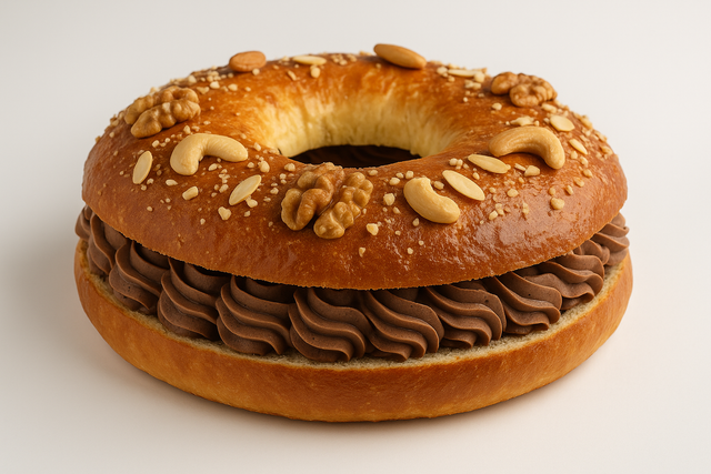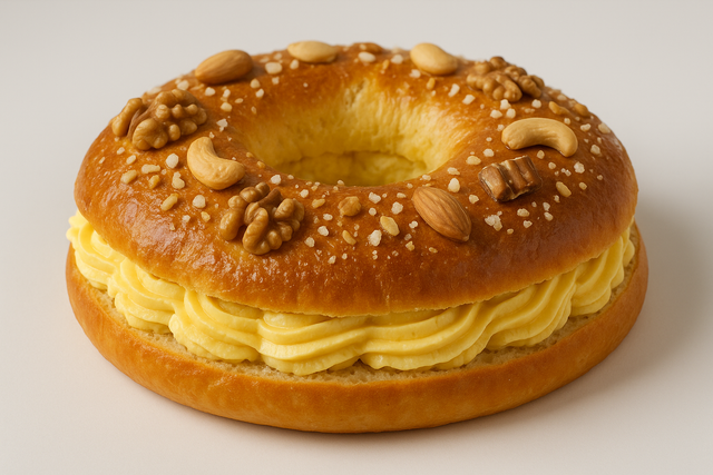 Crema - Ingredientes: Harina de fuerza [TRIGO], azúcar, HUEVO, LECHE, harina de maíz, naranja, levadura, mantequilla [LECHE], limón, vainilla, NUECES, ANACARDOS, sal.